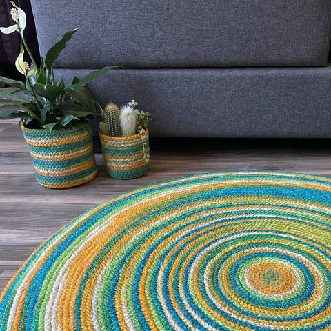 Lovingly handcrafted by skilled artisans, each rug is a unique expression of tradition and responsible craftsmanship. The tightly braided construction ensures lasting durability, while the circular design brings texture and personality to any room—be it a living room, bedroom, or entryway. Made from vegan, biodegradable materials, this rug is a versatile and planet-friendly choice for those who appreciate both elegance and sustainability.